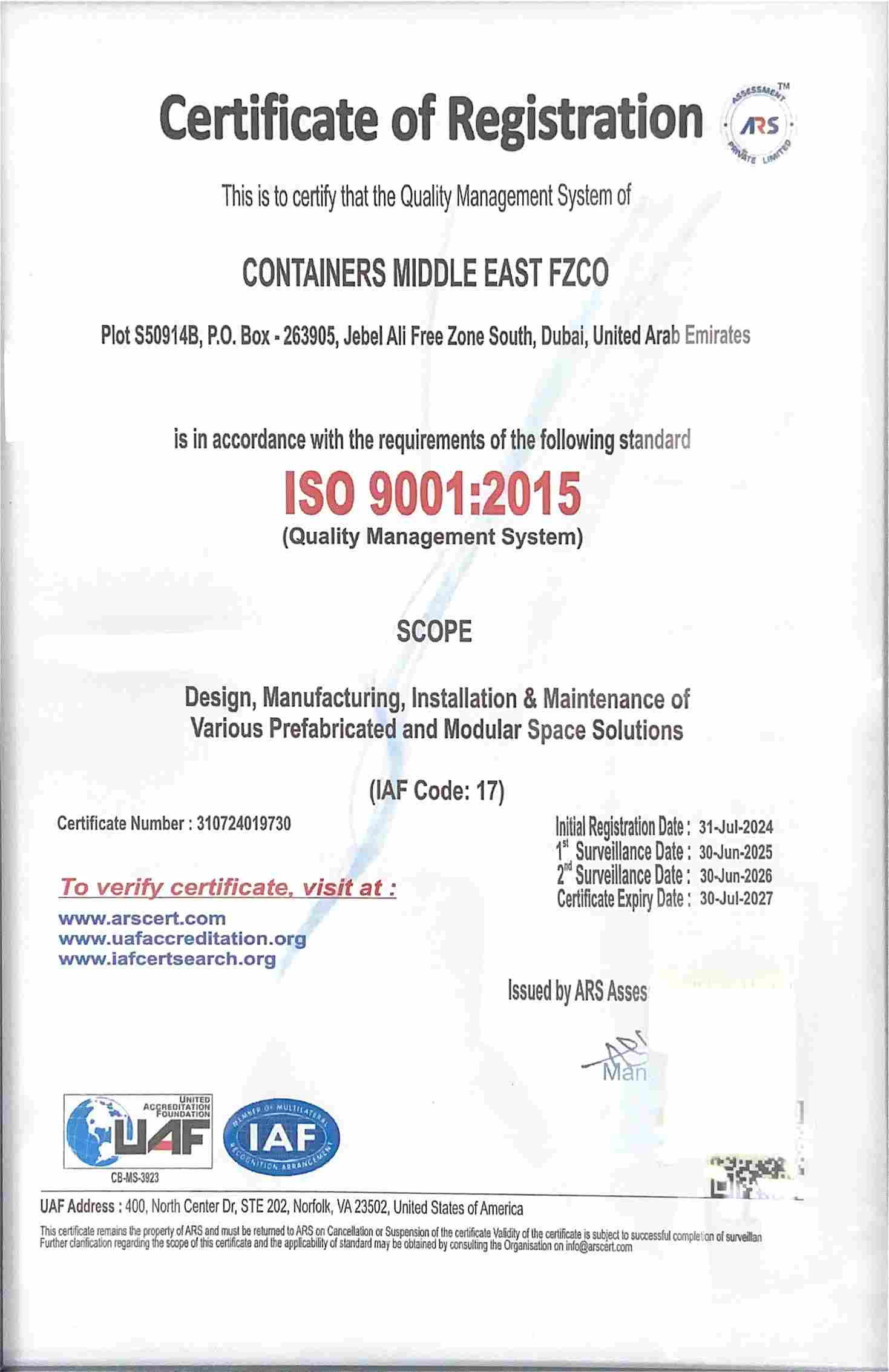 The benefits of choosing Containers ME continues long after the installation of the units as we provide aftersales service for as long as you need. All you have to do is sign the Annual Maintenance Contract (AMC) and enjoy technical support for all the maintenance-related issues. By signing the contract, you can rest assured that a highly professional team of dedicated staff are at your service all year round to attend to your needs.